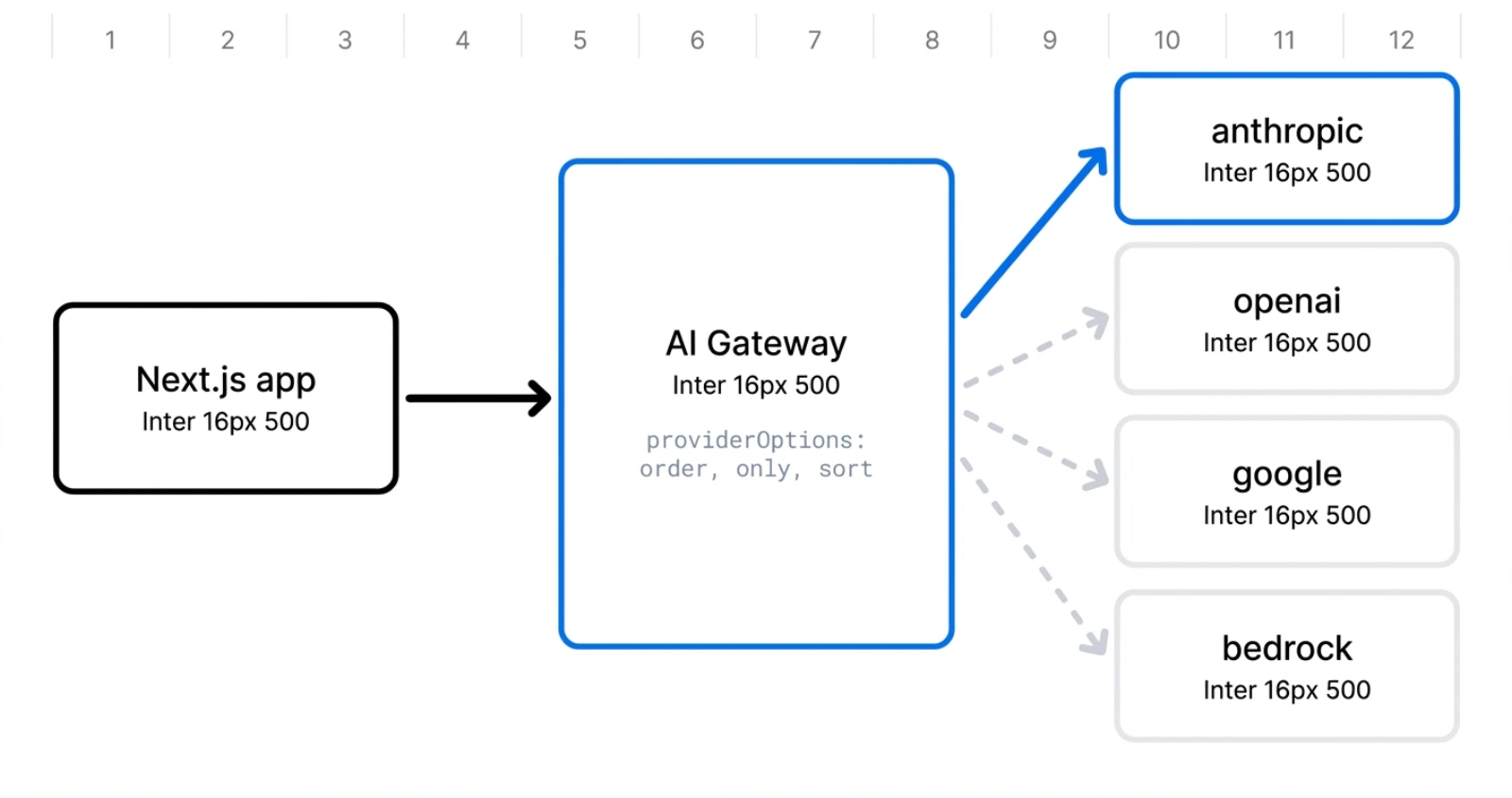 Under the hood, Vercel maintains system credentials with each provider, pools them for reliability, and picks which provider handles your request based on uptime, latency, and the preferences you set. If one provider is slow or down, the Gateway retries against another that can serve the same model. For models like Claude that exist on multiple clouds (direct from Anthropic, Bedrock, Vertex), you can route to any of them without changing the code.